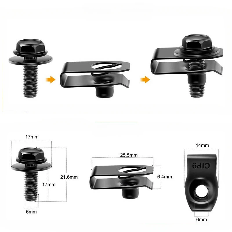 Secure your car panels and body parts with this 5-piece 6MM Auto U-Clip Screw Set. Designed for reliable fastening, it’s perfect for engine hoods, bumpers, fenders, and chassis covers. Each screw and clip pair offers a tight and secure hold for long-lasting durability. Made from premium metal, these clips resist corrosion and provide strong grip under vibration. The M6 self-tapping screws ensure easy installation without the need for pre-drilling. Ideal for replacing worn or missing factory fasteners. Suitable for most car models, including sedans, SUVs, and trucks. The clips hold panels firmly in place to reduce rattling and movement. Compact and reusable, they’re great for maintenance and repair projects. Keep your vehicle’s body panels properly secured with this durable, easy-to-use U-clip screw set.