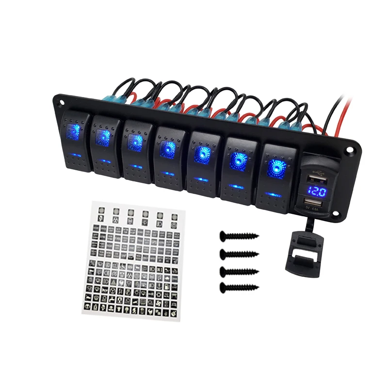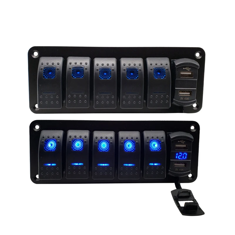 The Car LED Rocker Switch Panel combines functionality and convenience for automotive and marine use. It features a digital voltmeter to monitor your battery’s voltage in real time. Dual USB ports allow fast charging for smartphones, tablets, and other electronic devices. Includes a 12V power outlet for additional accessory connections. The panel’s rocker switches provide easy control of multiple devices. Designed for cars, boats, and marine applications, it offers durable performance in various environments. Compact and sleek, it fits seamlessly on dashboards or control panels. LED indicators ensure clear visibility even at night. Perfect for enhancing your vehicle or boat’s electrical system with multiple power options. Upgrade your charging and monitoring setup with this versatile LED switch panel.